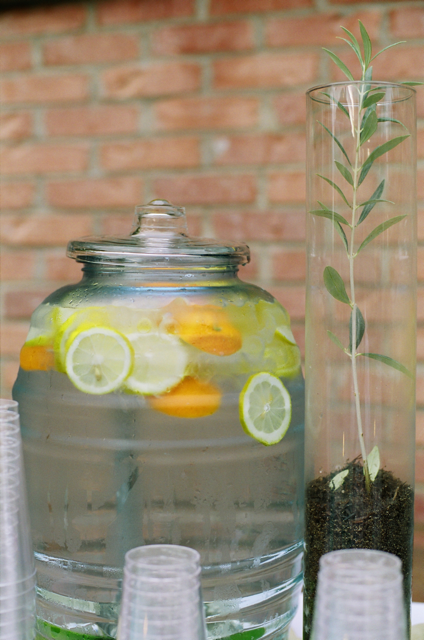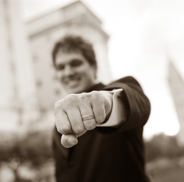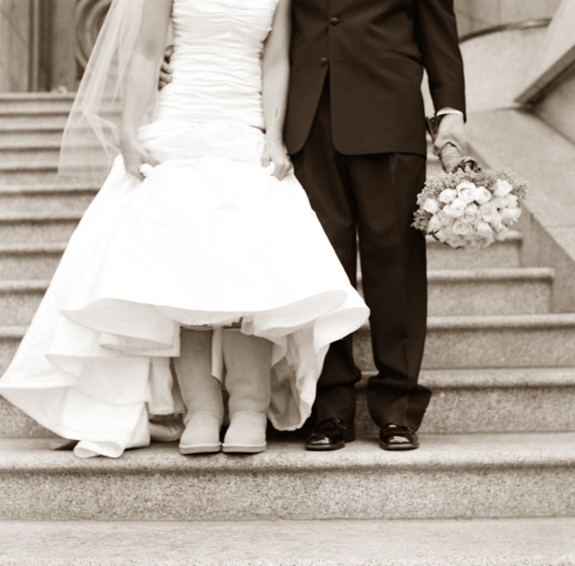 The rings: I designed mine with a simple circle diamond, bezel set in yellow gold almost flush with the wide, white gold band. We had it made by Alex Hughes at O.C. Tanner. We still marvel at how it turned out literally exactly like my drawing. Alex also made my wedding band, which isn’t pictured. I’ll have to show you sometime. It’s really pretty:) I found Dave’s two-tone ring at, ahem…the mall. It was exactly what I was looking for, white gold with inset yellow gold bands.