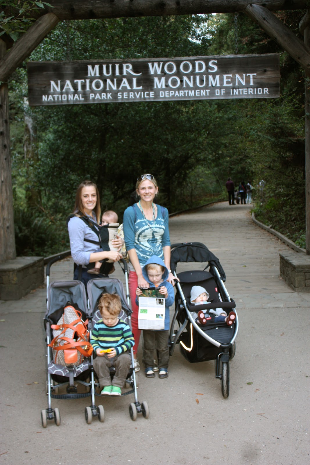 Muir woods has a paved trail through the towering trees, so it is a nice easy walk for strollers. The boys hopped in and out of them as we wandered down the path.