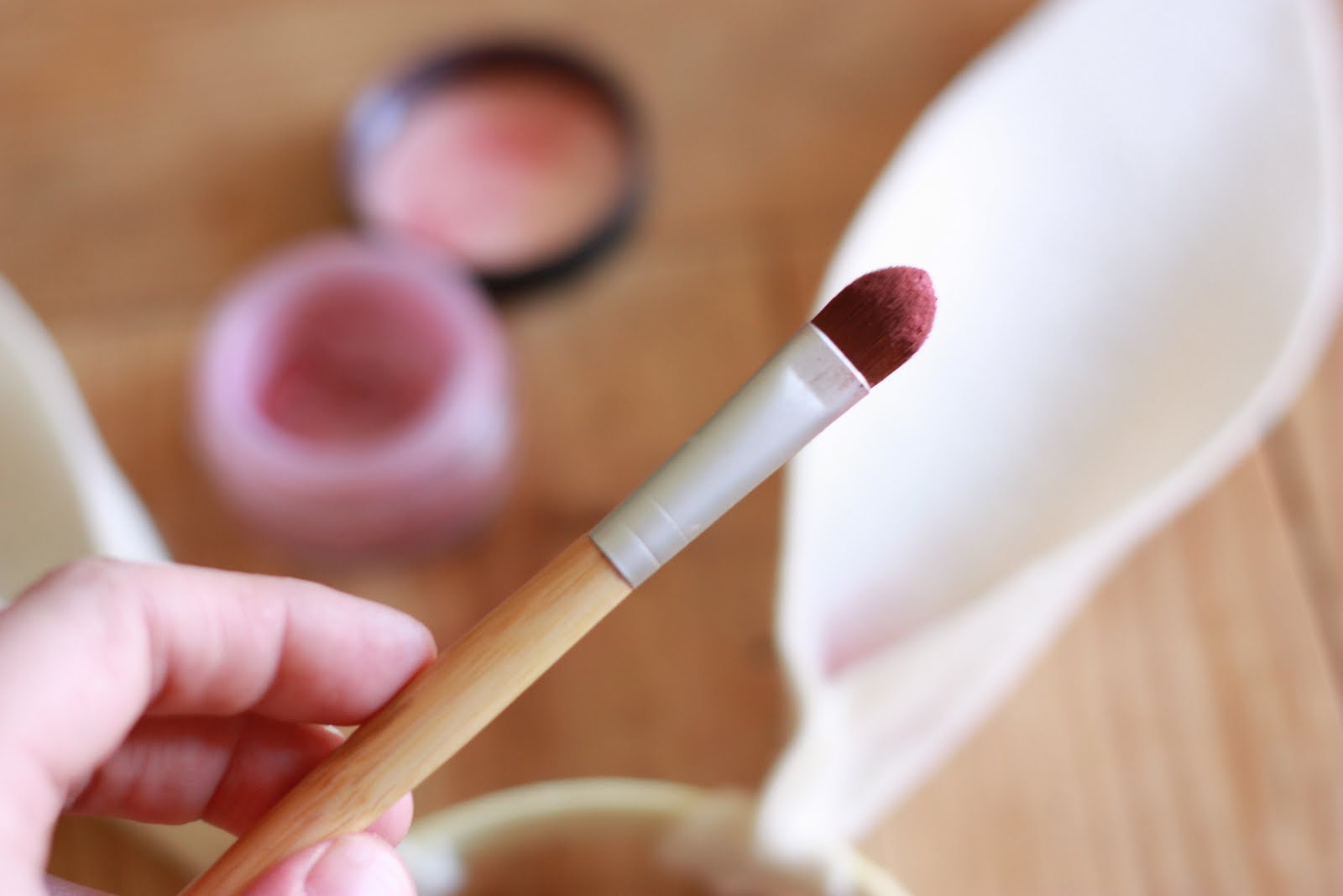 15. Dab your brush into the blush, and blow gently so that there are no clumps.