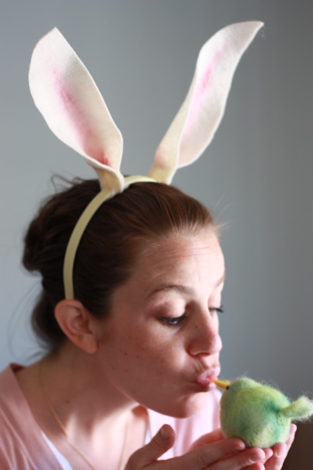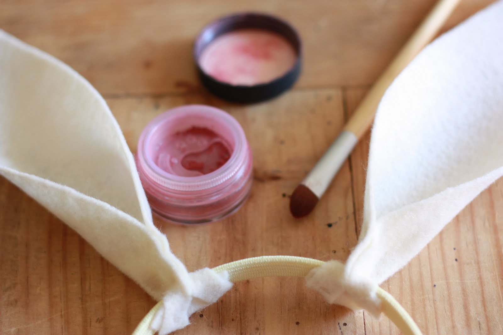 14. Now, we’re going to add some life to those felt bunny ears with your blush.