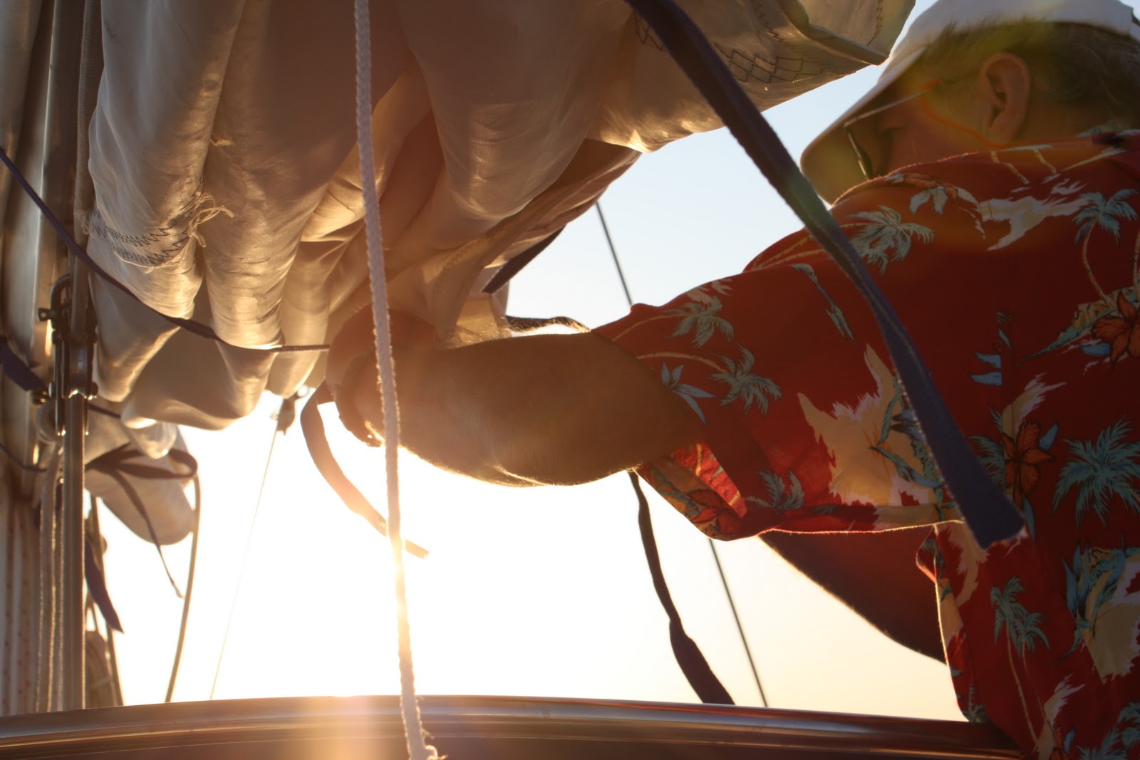 The dropping of the mainsail was almost as cool as it’s hoisting! It fell quickly and we bustled to get it strapped into place.