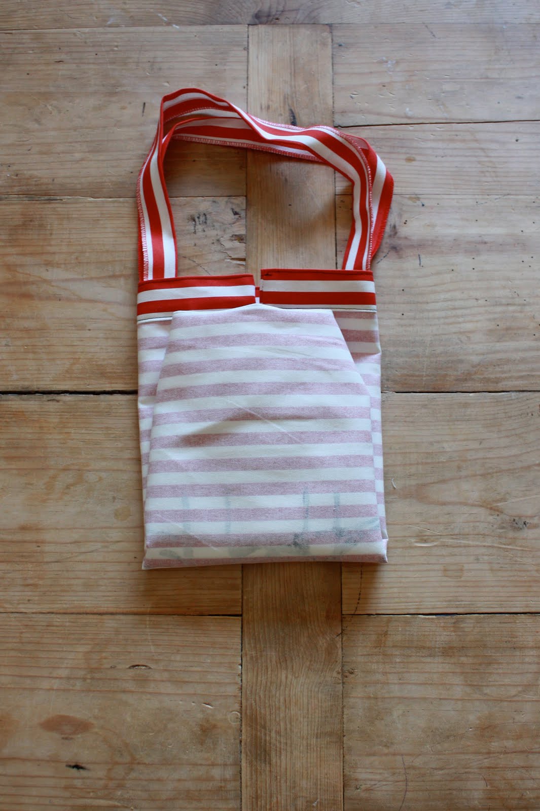 Then I folded the bottom up to the top, shortening the bag by half.